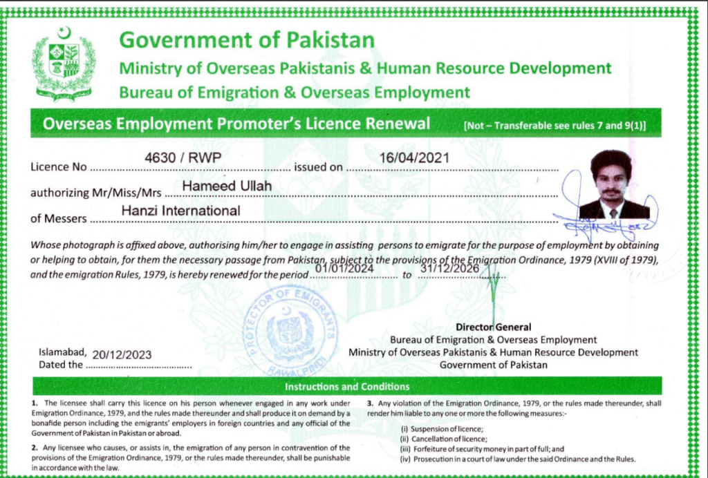 Hanzi International is a professional manpower Recruitment Company located in Rawalpindi, Pakistan which is approved by the Government of Pakistan, Ministry of Labour and Manpower, under License No. OP & HRD/4630/Rwp/2021.